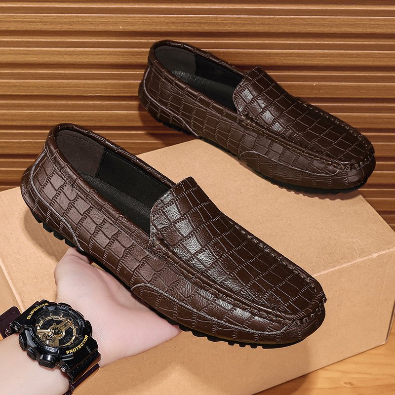 Genuine leather men’s leather shoes cowhide shoes embossed fashion business retro handmade men’s leather shoes