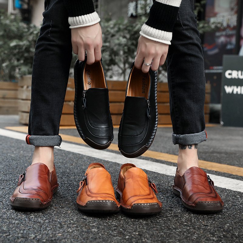 Men’s shoes Business British casual men’s leather shoes low top breathable foot lazy shoes driving leather shoes