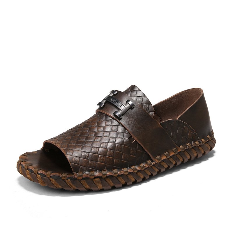 New men’s beach shoes breathable sandals retro hand-sewn genuine leather casual fashion handmade shoes