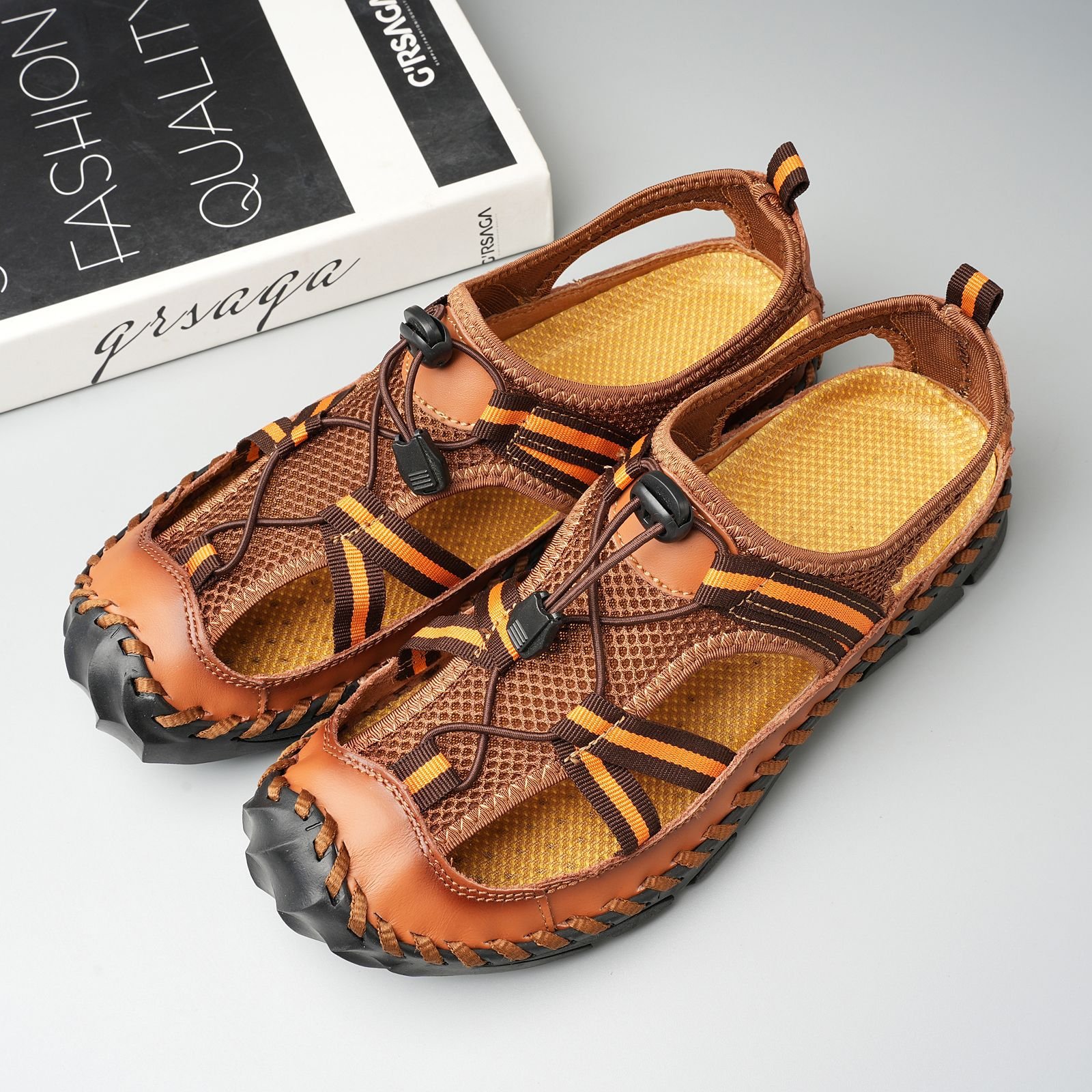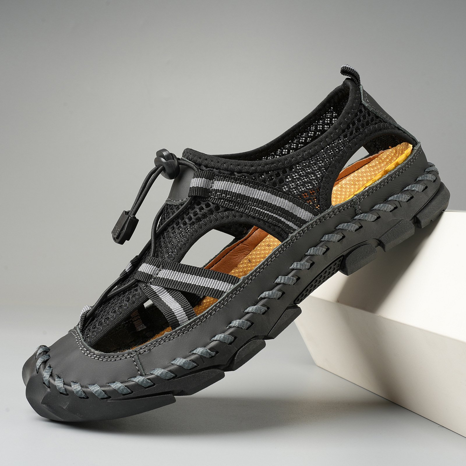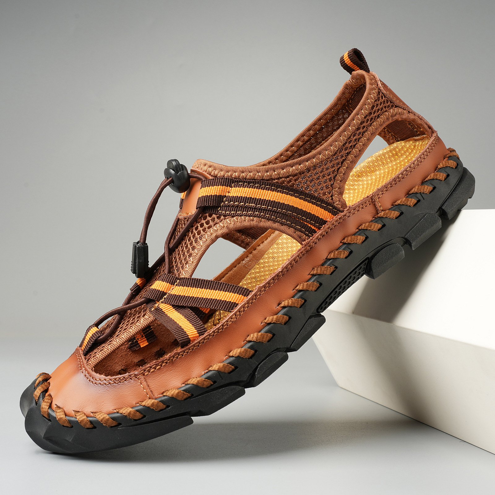 Summer men’s genuine leather sandals mesh sandals beach sandals men’s shoes outdoor breathable mesh sandals